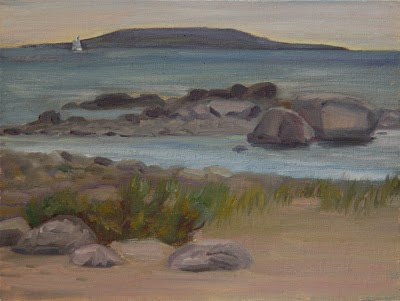 I have forced myself to persevere with plein air work, despite my former distaste for painting rocks and trees. I have to say I really enjoyed painting the distinctive large rocks and grasses in this scene. I think I am finally starting to get the hang of this and enjoying it more!